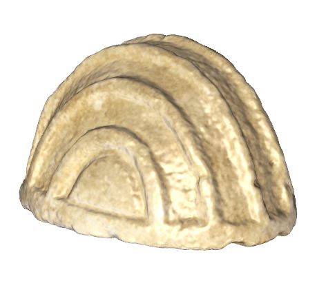 This architectural element is carved as a hemisphere. Seven “ribs” are also carved in bas-relief on its circumference and four channellings on the flat bottom (these ones were probably used for mounting the artefact on a stand). This element was probably decorating the upper parts of the stone walls in Sarmizegetusa Regia. Find spot: Grădiștea de Munte – Sarmizegetusa Regia (Hunedoara county) Dimensions: length - 18,5 cm; width – 13,7 cm; height – 11 cm Material: limestone Technique: carving |