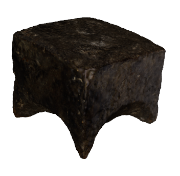 This type of anvil is characterised by a massive parallelepiped body and by the presence of four pegs at the base. The outer sides of the piece are arched and it has four ribs on the inside (they start from each corner and cross in the median area), which helps fastening the anvil well on a wooden stump. Anvils are an indispensible accessory for a blacksmiths workshop and are used in supporting metal pieces that are being processed by forging – hammering. The great number of anvils being discovered in the civil quarters of Sarmizegetusa Regia, as well as the big number of iron objects, some under processing, shows that in the 1st century AD this was one of the greatest metal processing sites in ancient Europe. The production of metal processing workshops in that place was so high and varied (tools, weapons, building materials, objects for everyday use etc.), that it is extremely possible that it was destined not only for the capital area of the Dacian kingdom, but also for other more or less distant regions. Find spot: Grădiştea de Munte – Sarmizegetusa Regia Dimensions: Length – 21,5 cm; Width – 20,5 cm, Weight – 46 kg Material: iron Execution technique: hammering |