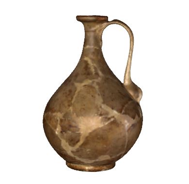 The jug apparently imitates in ceramic a Roman bronze vessel. It has a rounded body, a tall thin neck, a narrow mouth, a faceted outward flaring rim, and a foot ring. It has with a wide handle attached to the neck and the body above the maximum diameter. It was painted with bird-like and geometrical designs, using brown-red and black colours on a white-yellowish engobe. Find spot: Grădiştea de Munte – Feţele Albe (Hunedoara county) Dimensions: height - 15,2 cm; rim diameter - 7,3 cm; base diameter - 11,1 cm Material: clay, smooth brick-red-yellow paste, containing mica, white-yellow engobe Technique: wheel-thrown, oxidation firing |