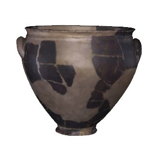 The vase has a tronconic body, a wide mouth with a horizontal flared rim and a narrow bottom. Right under the rim it has two handles arranged horizontally. It is a fine vase with multiple possible uses, such as bringing food and liquids to the table but also for occasionally storing various products. Inspired from the Greek vessel repertoire where it was used for mixing wine with water, it was adapted by the Dacians to their own tastes and customs. Find spot: Grădiştea de Munte – Meleia (Hunedoara County) Dimensions: height - 35,8 cm; rim diameter - 37 cm Material: clay, smooth grey paste Technique: wheel-thrown, reduction firing |